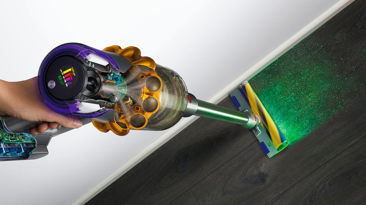 This is the V15 core strength. On hard floors and carpets, suction is intense. The Digital Motorbar adjusts power automatically and untangles hair with its built-in combs.Laser Dust Detection