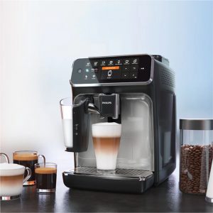 The Philips LatteGo 4300 is a bean-to-cup espresso machine designed for people who want café-style drinks at home without learning to be a barista. It features one-touch coffee recipes, an easy-to-clean LatteGo milk frothing system, and a sleek touchscreen display.